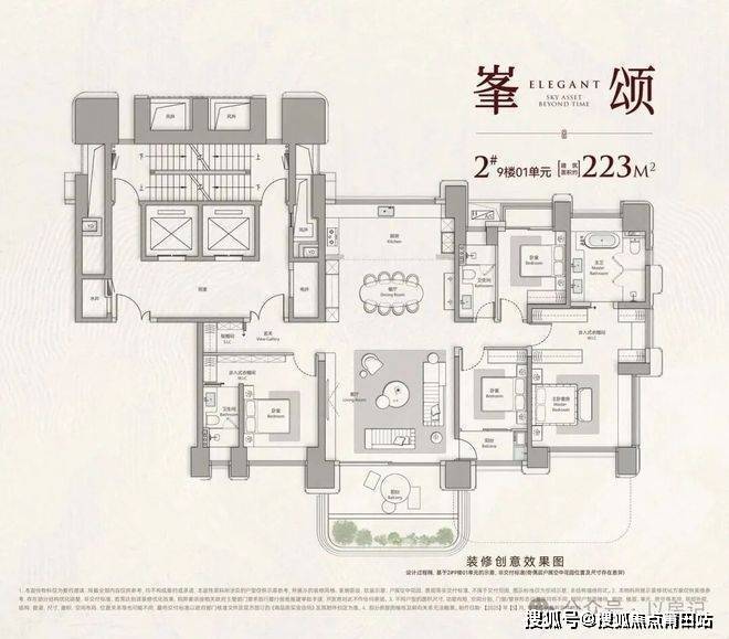 •主打建面约198-575㎡大平层及复式产品,均为第四代生态住宅,户户配置空中花园或露台,部分户型赠送6.8%-20%的露台面积;