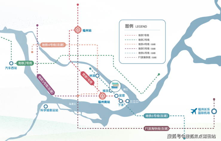 地铁6号线樟岚站直达项目(预计2022年10月通车); 二环路、三环路、南江滨东大道 · 三江口大桥、道庆洲大桥、魁浦大桥、鼓山大桥快速串联福州