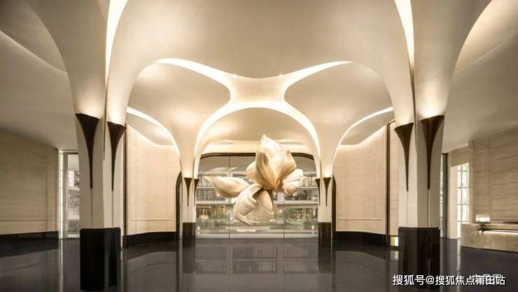 这份对状元文化的致意,如涟漪般在社区各个角落延展。会所大堂内,柱体设计巧妙复刻 “芝兰玉树” 形态,搭配意大利超白洞石石材墙面,让艺术与文化在此交织;一层电梯厅的地面,芝兰玉树的超级符号静默伫立,成为每次出行与归家的独特印记;地下车库亦遵循奢华酒店标准,其造型上延续芝兰玉树符号,车道柱体融合玉树向上生长的姿态,即使寻常行车动线,也浸润着文化气韵。