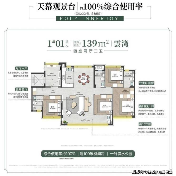 在优质土地稀缺性日益凸显的背景下,保利·瑧悦|观樾以 约100%综合使用率(以1#楼202为例,含电梯厅) 的建面约125-220m²奢居,约2.2容积率低密洋房住区,与公园水岸无界交融,构建起隐于公园绿境中的奢享生活,超越莆田范式的“樾式生活体系”,从空间、景观到服务的全维度价值闭环。