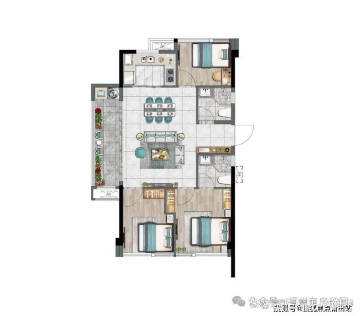 78㎡三房两厅两卫:经典竖厅设计,南向双阳台,空间利用率高,适合年轻家庭。