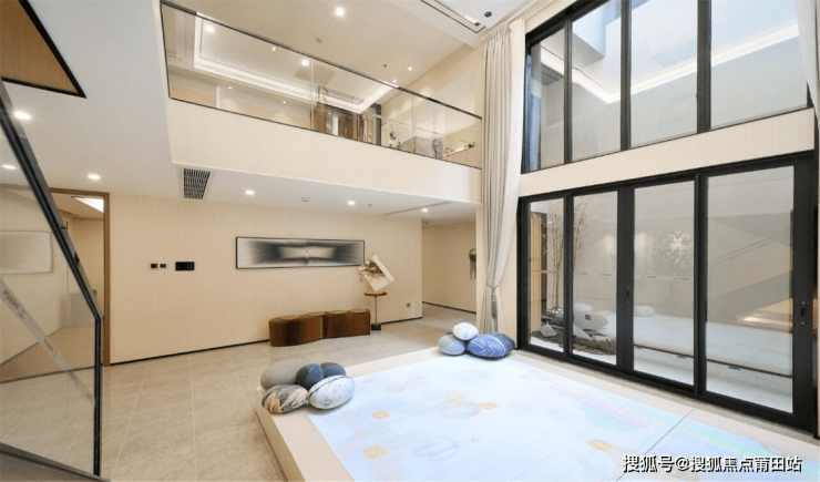 在景观空间上通过大尺度的建筑间距,留出开阔的庭院空间,并通过建筑围合、景观轴线、步行路径等元素将公共空间划分为不同等级的院落庭院,形成“公共—半私密—私密”的院落空间;在交通动线上整个社区采用人车分流的交通系统社区内还规划有主题式架空层泛会所、全龄化社区景观及主题式商业街区配套。