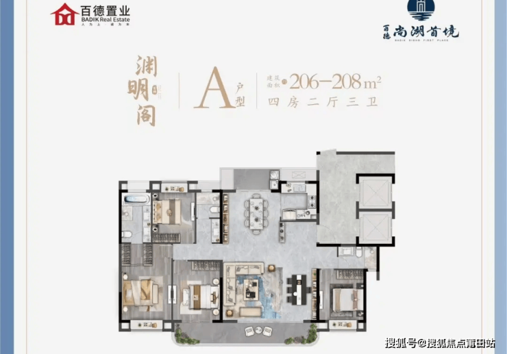 4室2厅3卫1厨, 206平米