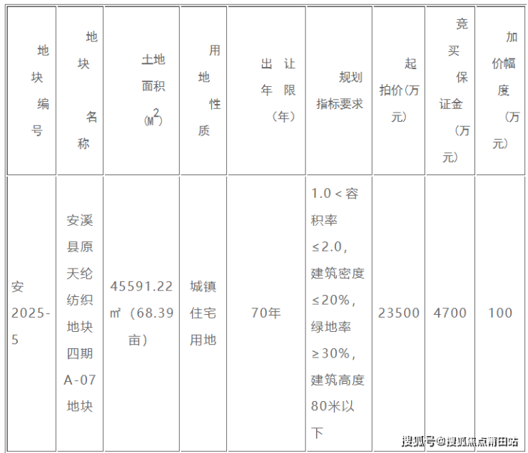 2.相关规划建设要求按照《安溪县自然资源局关于安溪县原天纶纺织地块四期A-07地块用地规划设计条件的通知》(安自然资〔2025〕203号)执行,其中社区卫生室、文体活动室、养老服务用房和邻里中心等公共服务用房应当在竣工验收后无偿移交给政府有权机构统筹使用,土地和房屋产权归政府有权机构所有,费税由开发商负责。