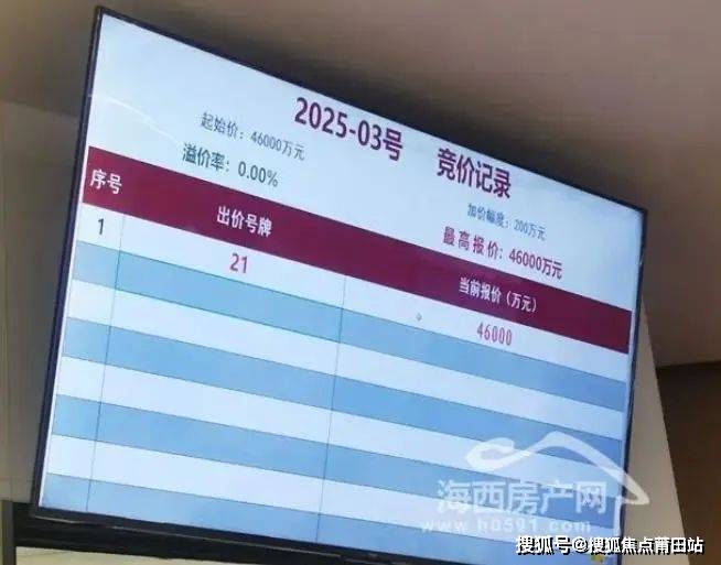 2025年3月28日,在福州市举行的年度首轮土地拍卖活动中,福州嘉瑞房地产有限公司(国贸)以底价4.6亿竞得福州宗地2025-03号,楼面地价9914.94元/㎡。