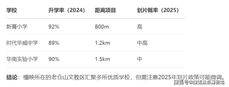 2. 学区资源(仓山TOP学校对比)结论:檀映所在的老仓山文教区汇聚多所优质学校,但需注意2025年划片政策可能微调。