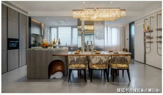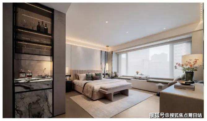建面约225㎡户型,四开间朝南,约10m宽境阳台将生活与阳光、风景相连接,敬献都心奢感生活场景。