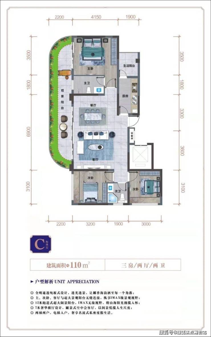 9.【品质豪宅 圈层私属】30㎡超大前后阔景阳台,观海阅山,尽显雍容。南北通透纯板式结构,电梯入户,全屋奢配品牌精装。为塔尖阶层,筑极致私密海居体验。