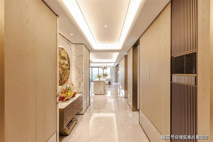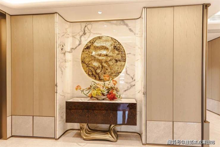 玄关柜的精致不止体现在收纳分区的布局,结构与美感也是必备要素。入户处的艺术玄关设计,在空间尺度、材质使用、色彩搭配上注重仪式感和雅奢氛围的营造,满足日常收纳需求的同时,又保持了空间的完整和连贯性。