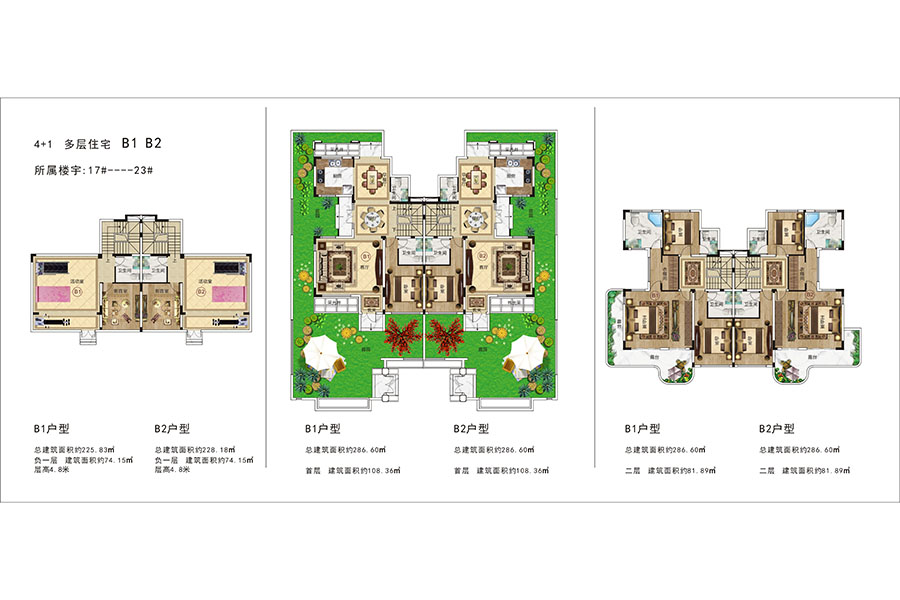 社区规划由南向北依次分布为3+1下沉式别墅、4+1叠墅,7层退台式洋房,11层、17层、18层大平层,共计454套住宅房源,小区采用全地下停车,设有三个地下车库出入口。社区内含游泳馆、养生会所。同时与世界500强美的集团合作,量身规划美的智慧化配套,旨在打造豫北地区排名前列美的全智慧科技大宅社区。