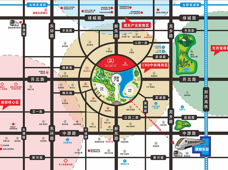 濮东·湖畔公馆鼎踞新东路与苏北路黄金轴线,向北毗临绿城路,向南毗邻中原路,向西毗邻东环路,5分钟车程即至濮阳东站(高铁站)及濮阳北高速口。高铁、高速路、城市主干道、立体四维交通网络,联动濮阳市区及周边县镇,打造1小时郑济生活圈。