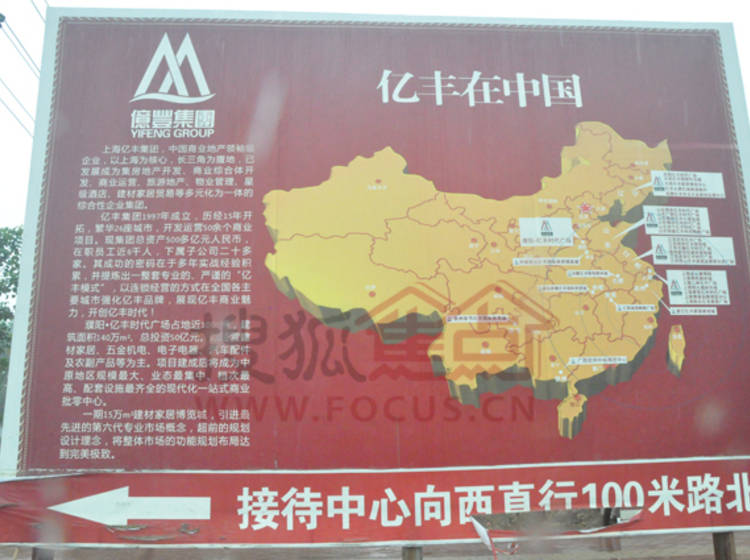 亿丰时代广场项目概算投资50亿元,占地约1000亩,规划总建筑面积约140万平方米,建设集五金机电、电子电器、陶瓷、地板、建筑装潢材料、家居、汽车配件等专业商品市场在内的现代城市商业综合体。