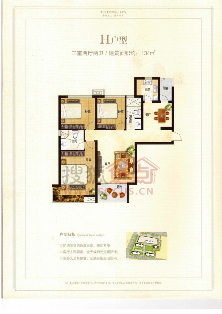 3室2厅2卫-中央城H户型图