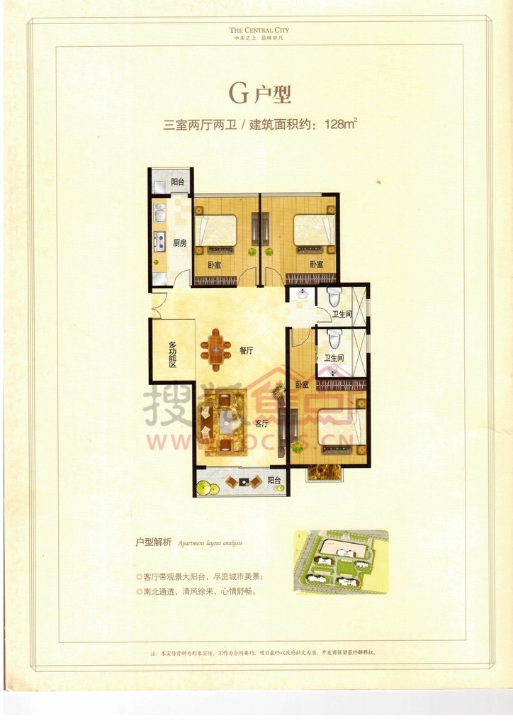 3室2厅2卫-中央城G户型图