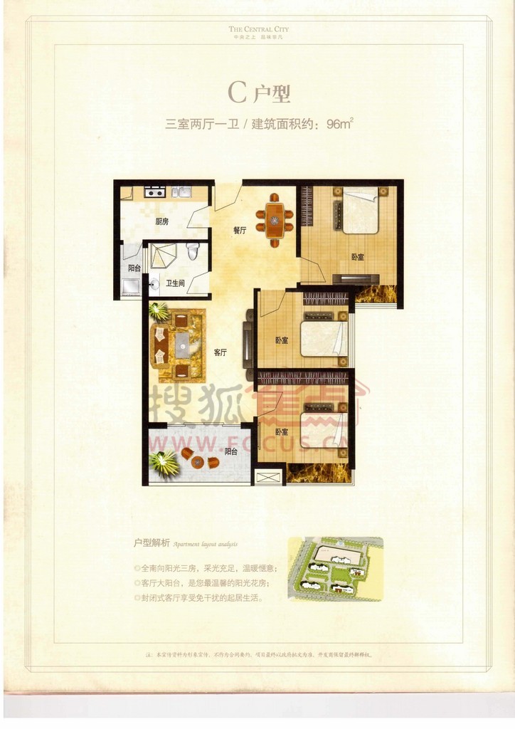 3室2厅1卫-中央城C户型图