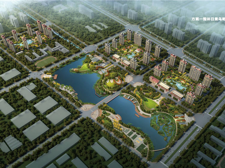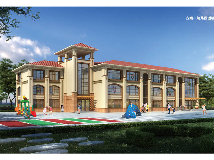 小学、社区居委会、超市、商业街、运动场地、老年文化中心、地下停车场、露天停车位、自行车棚、垃圾回收点、消防设施 庭院景观 儿童乐园