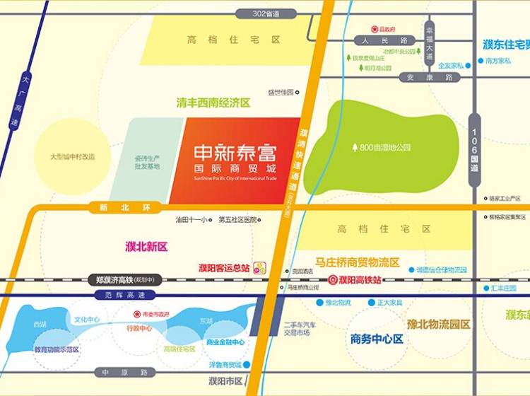 濮阳客运总站、郑濮济高铁、濮范高速、106国道。