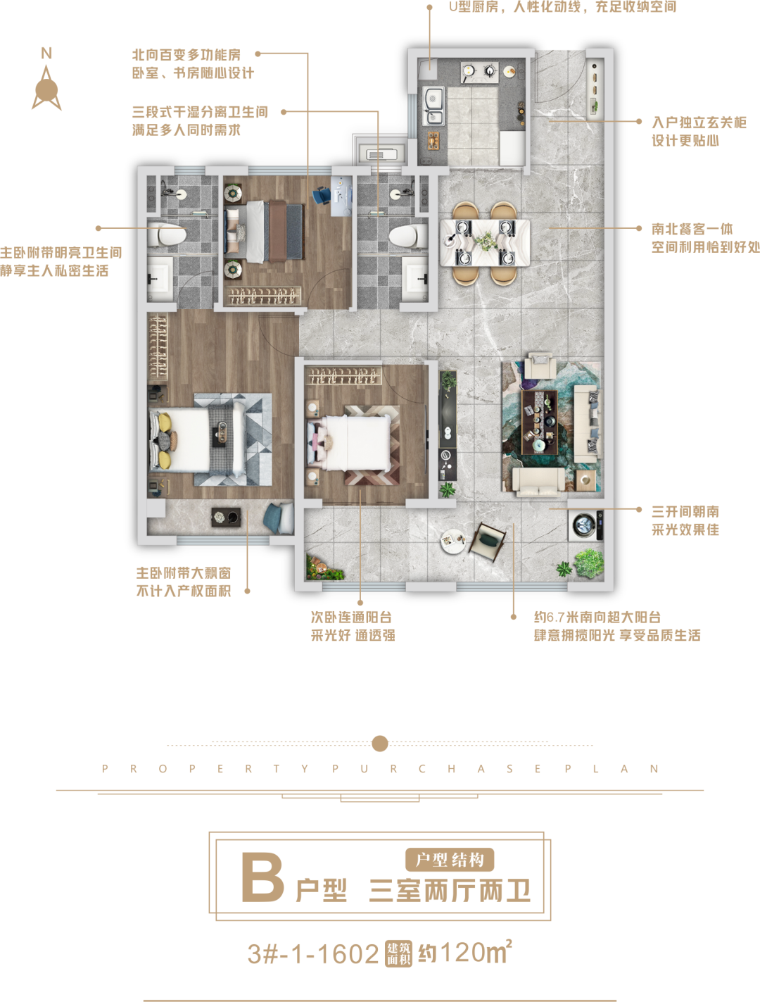建筑面积约:120—130㎡瞰景高层 建筑面积约:160㎡叠拼美宅