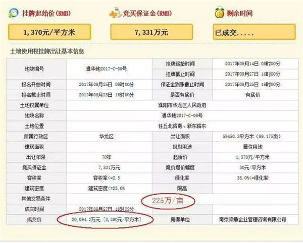 此消息一出,震惊了濮阳房地产市场,在不久前9月18日,濮东新区的地价刚刚拍卖出单价为207万/亩的新高度,然而不到十天时间,濮东新区地价记录再次被刷新。