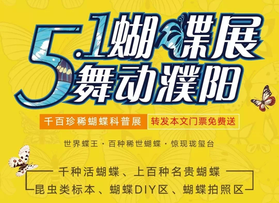 🦋濮阳首届珍稀蝴蝶展5月1日-5日盛大绽放,数千只蝴蝶美丽来袭🦋,连续转发此链接三天及以上,价值58元门票免费送送送…