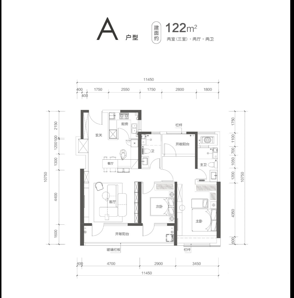 3室2厅2卫-B户型三室 (四室 )两厅两卫