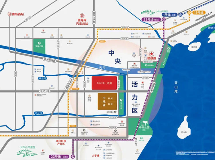 卡地亚·世家,占据着西海岸核心价值和潜力地段。超高标准打造片区内少有约1.7容积率的纯高端住宅。