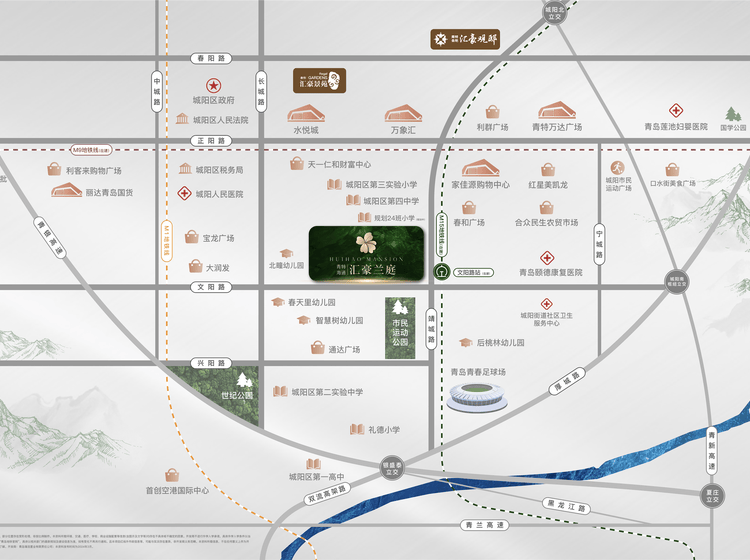 汇豪兰庭项目位于靖城路与文阳路交汇处,由青特置业、海通地产两大实力房企共同匠筑,是继汇豪景苑、汇豪观邸后汇豪3.0送新全洋房力作:项目坐拥城芯地脉——“交通、商业、文体、教育、政务“五芯交汇之处,紧邻在建地铁15号线文阳路站,万象汇、青特万达等大型商业云集,城阳区实验第三小学、城阳区第二实验中学等优教环同,毗邻青春足球场、市民公园等公共配套;项目约1.7容积率,规划8栋洋房,产品面积涵盖128m²/143m²/182m²均为可变三居/四居洋房产品;南向大面宽,宽幕阳台、LDKG一体化通厅设计以及标配家政功能等提升空间利用率;兰庭星级生活馆臻配四点半课堂、儿童活动区等多元场景空间,社区多条灵活生活动线,让业主奢享生活的优雅时光。