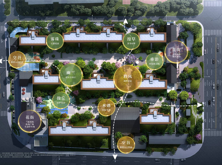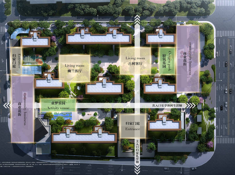 归家门庭、幽兰客厅、古树客厅、轻氧乐园、童梦乐园、商业花街