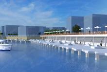 青岛国际游艇会展中心为海上40万㎡国际商旅综合体,涵盖展览中心、品牌购物、海上观光、濒海物产、558席泊位码头等全业态。