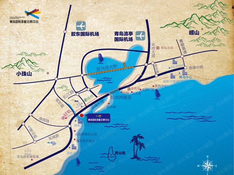 从青岛市区方向过隧道,沿滨海大道行驶至保利海上罗兰对面即是项目。