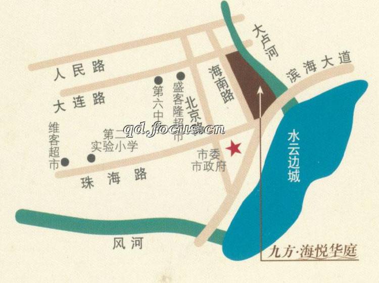 项目位于青岛的西海岸,紧靠海滨观光大道,地理位置优越,是胶南市未来的新市区。项目周边交通便利,距离青岛经济技术开发区、青黄环海高速公路约10公里,距离青岛市区、流亭国际机场约40公里;随着青岛跨海大桥与海底隧道建成,从项目到青岛2008奥运赛场的车程仅30分钟左右。