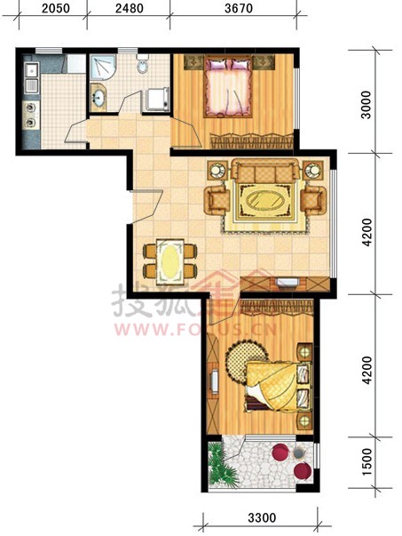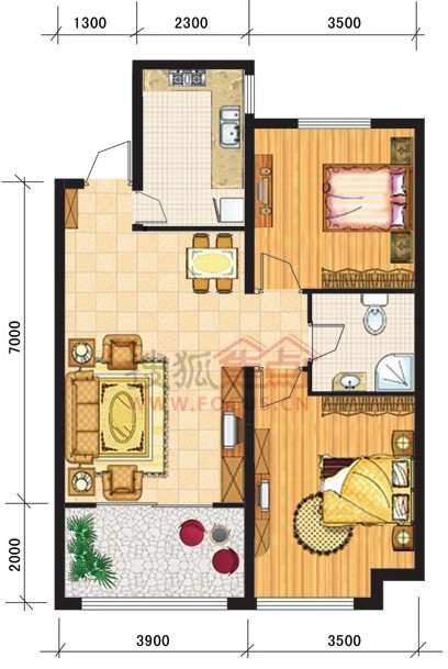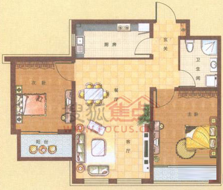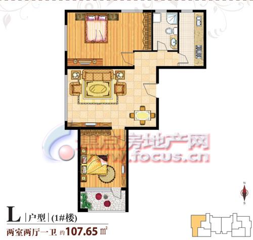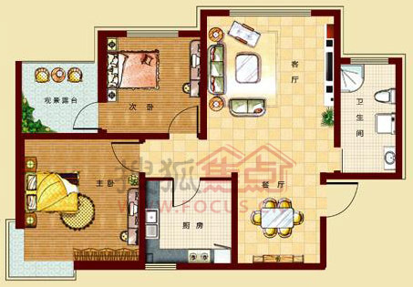 2室2厅1卫-标准层两室两厅一卫约74.00平F