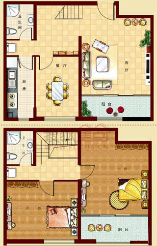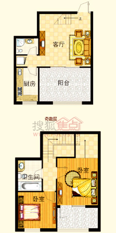 2室2厅2卫-3#标准层两室两厅两卫约89.96平E复式
