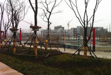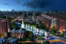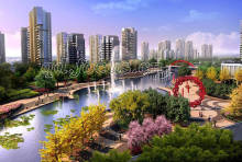 银盛泰星河城区内景观设计以贯穿社区的中央景观带为主,采用三级绿化体系,使社区呈现出错落有致、高中低矮各不同、四季常青的景观效果。其中楼与楼之间的组团景观点缀其中,蜿蜒迂回的小路和休闲活动场所及院落景观,可谓窗窗看景,移步异景,同时保证每位业主的居住环境私密性。