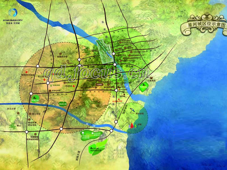 银盛泰星河城,位于原胶南新城区的核心位置,东面及南面近邻城区行政机构主要干道北京路与泰山路,西邻金辉路,是一座集小高层、高层、情景美墅、公寓为一体的交通便利的高品质社区。