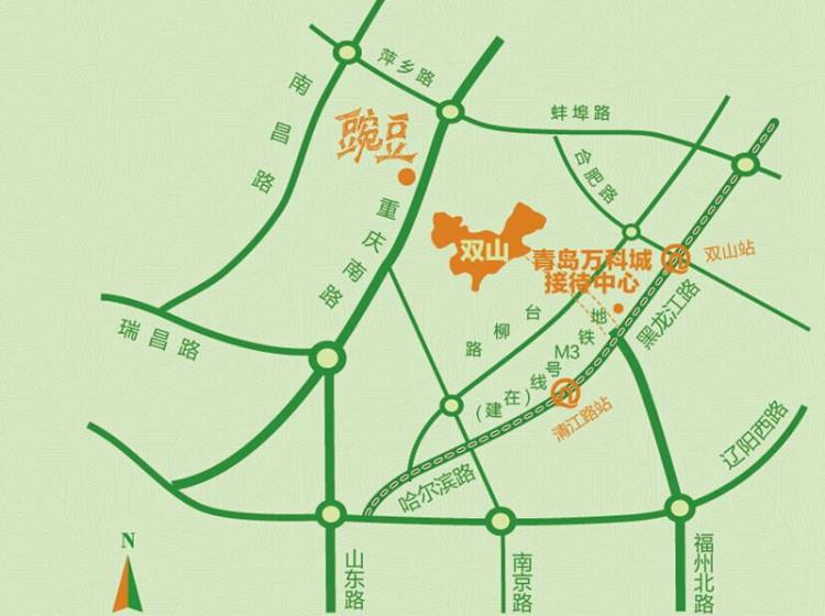 地铁:离青岛首条地铁M3号线清江路南站距离约为1.3公里