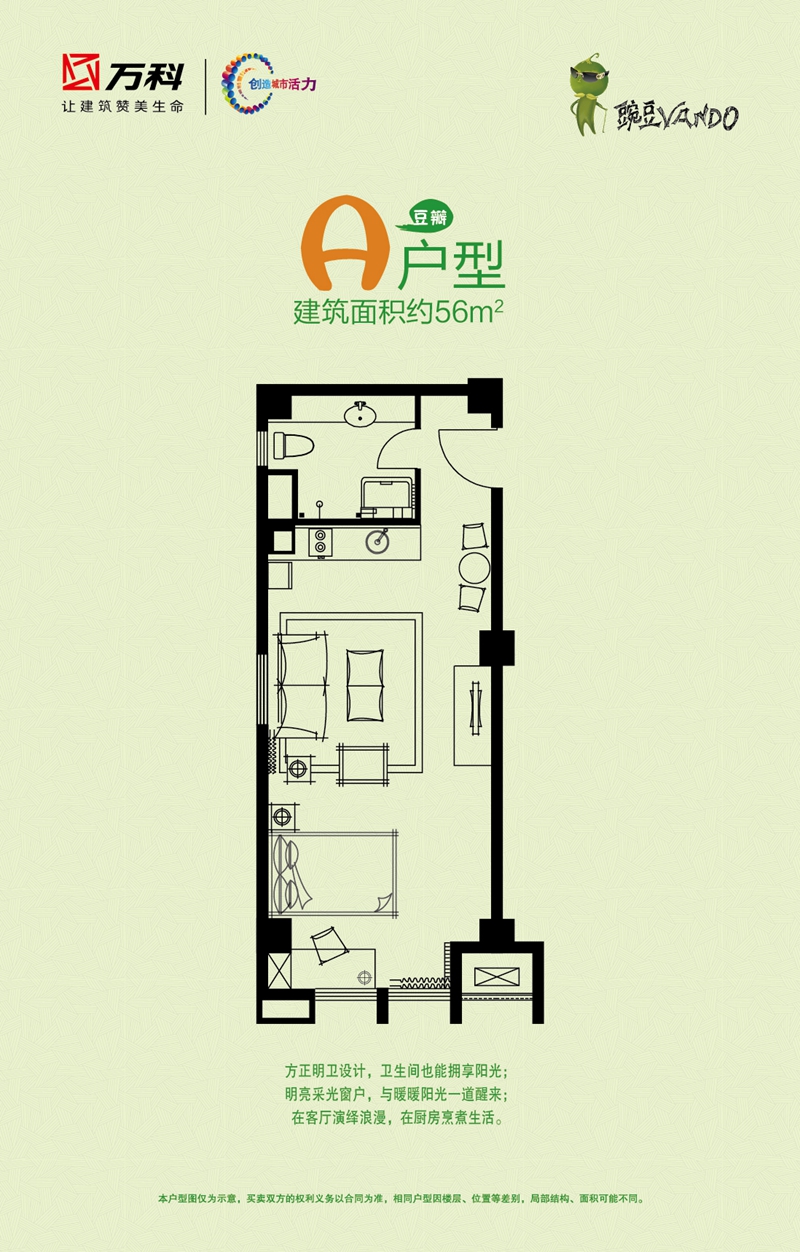 0室-万科豌豆建筑面积约为56平公寓A户型图