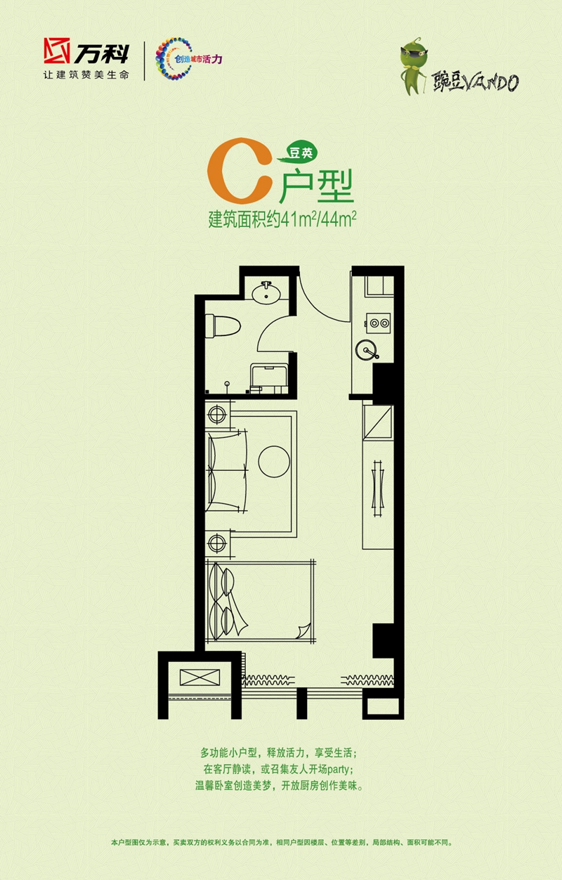0室-万科豌豆建筑面积约为41平公寓C户型图