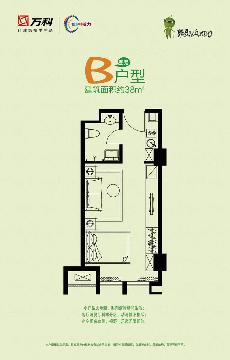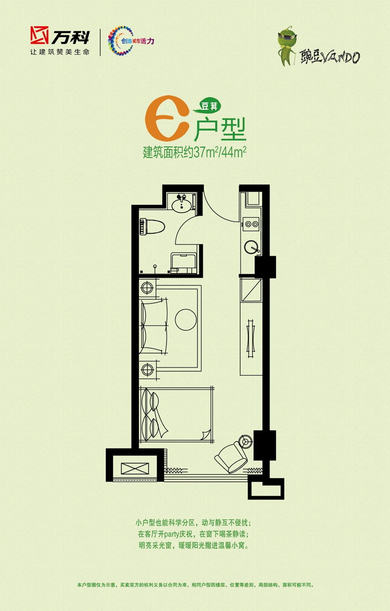 0室-万科豌豆建筑面积约为37平公寓E户型图