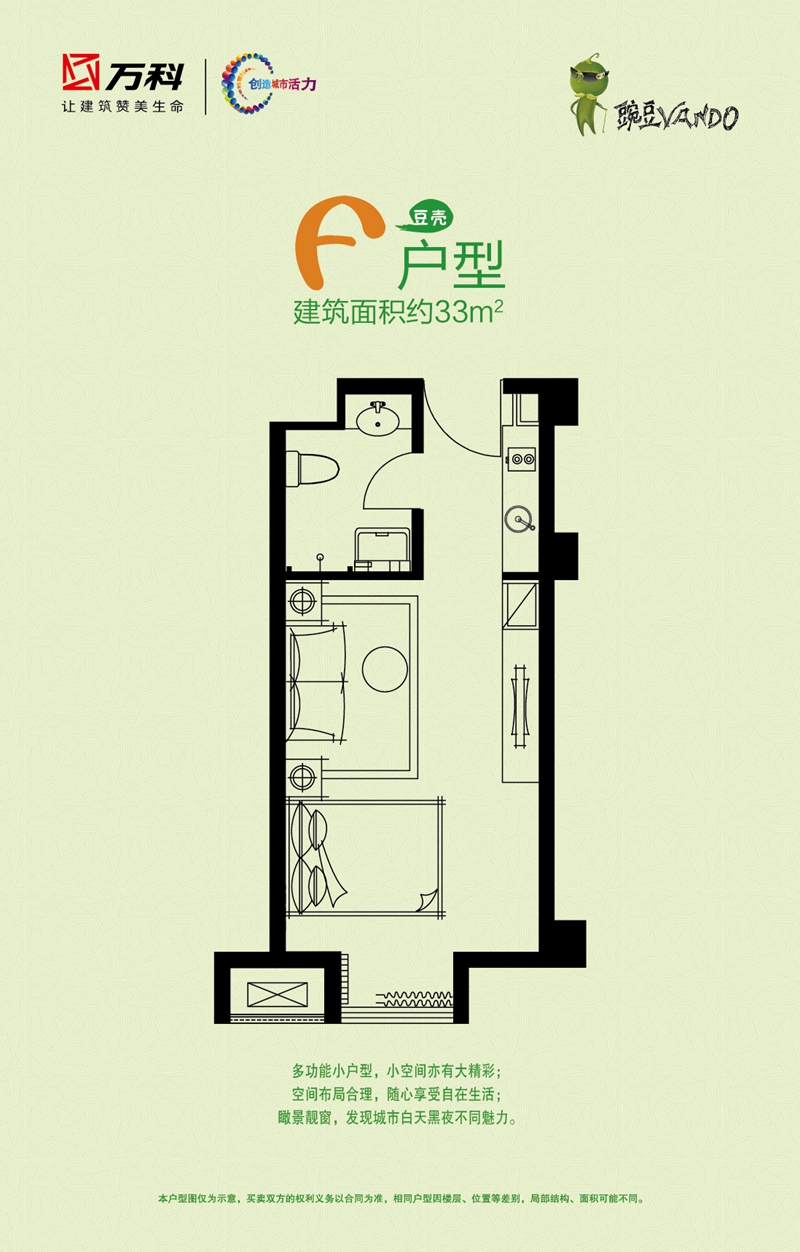 0室-万科豌豆建筑面积约为33平公寓F户型图