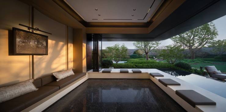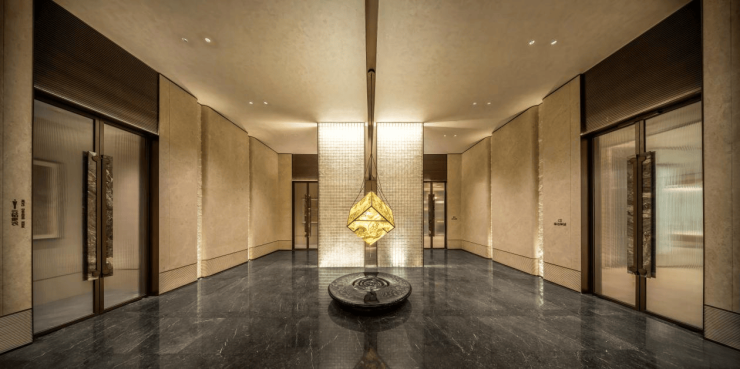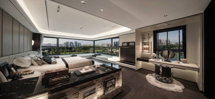 大面积通透玻璃窗幕与半开放式空间,将开阔山水与丰沛情景于空间中和谐相融,诞生静谧而雅奢的圈层意境。