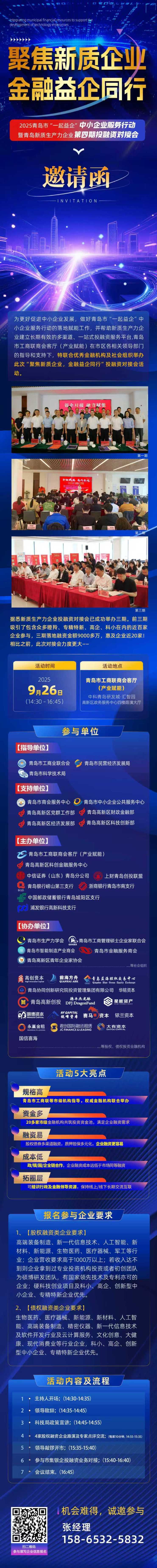 为了更好解决中小企业融资难问题,帮助新质生产力企业建立长期有效的多渠道、一站式融资服务平台,从而推进2025青岛市“一起益企”中小企业服务行动,9月26日青岛市工商联商会客厅(产业赋能)、青岛高新区科创金融服务中心等单位联合举办 “聚焦新质企业,金融益企同行”投融资对接会。