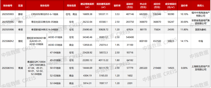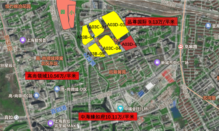 另一宗闵行区莘庄社区MHP0-0201单元13A-10A、13A-13A地块,吸引16位竞买人参与竞拍,最终上海建工房产有限公司联合上海保利建锦城市发展有限公司以13.09亿元的总价竞得,楼板价48105元/平方米,房地联动价80000元/平方米。