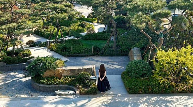 面对崂山林涛与石老人碧波,海德山庄以“谦卑对话自然”的理念,打破传统高密度开发模式——以约1.3的超低容积率、约6万方台地园林,将建筑与自然环境编织成有机整体,与山海共鸣,与自然共栖。