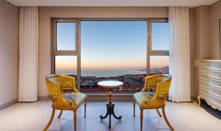 项目深挖青岛历史文脉,将八大关“八角窗”这一城市记忆符号融入户型设计:匠筑建筑面积约168-300㎡的瞰海藏品,主卧八角窗设计以270°环幕视野,将山海盛景转化为“钻石切割面”般的光影美学艺术。