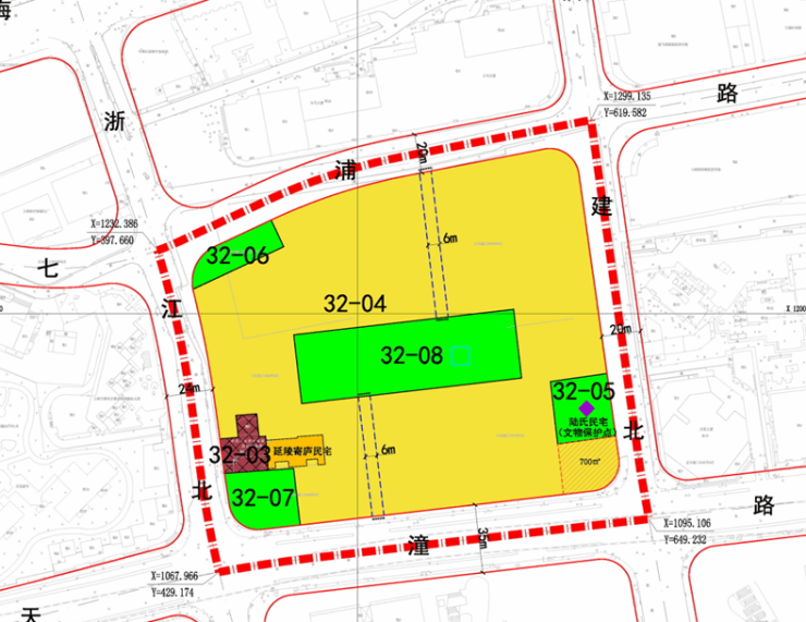 出让人要求,地块内部广场面积不小于700平方米,地块内部绿化面积不小于1600平方米,短边原则上不小于12米,不得设置围墙,满足24小时对外开放。