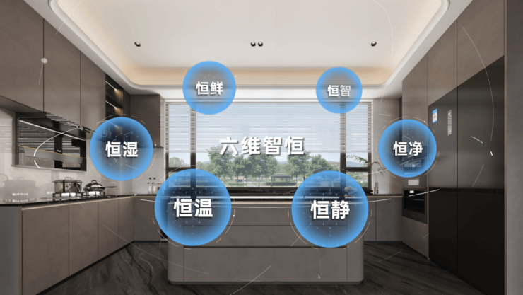 以用户普遍关注的“智慧空气”为例,该系统致力于营造恒温、恒湿、恒鲜、恒静、恒净、恒智的“六维智恒”健康空气环境,让居家空气始终保持洁净、清新,温润如春。