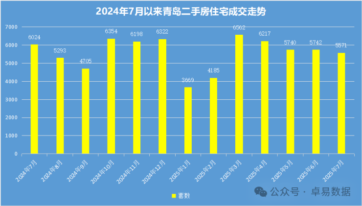 2025年截至到7月底,青岛新建商品房签约39712套(退房已剔除,以下同),成交497.71万㎡,成交总价705.42亿;签约套数、面积和签约金额同比去年上涨0.05%、1.9%和2.8%;二手房成交套39962套(住宅37868套),二手房交易量超过新房。青岛新房、二手房2025年1-7月合计成交约8万套。