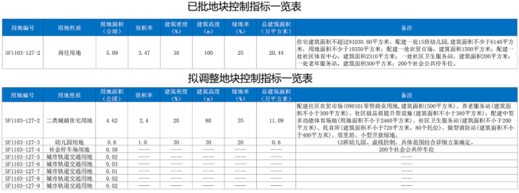 ①用地性质由商住地调整为城镇住宅用地、幼儿园用地、社会停车场用地、城市轨道交通用地独立占地。