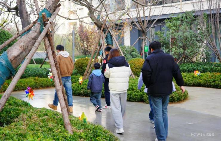 项目全方位优化园林设计,让园林景观颜值更高,空间功能更丰富。项目在春天全面展开景观示范区的绿化苗木补栽工作,引入多种多样的名贵绿植花卉,通过增添灌木、丰富植被、小景组合点缀等方式,构建四季皆景的园林景观。